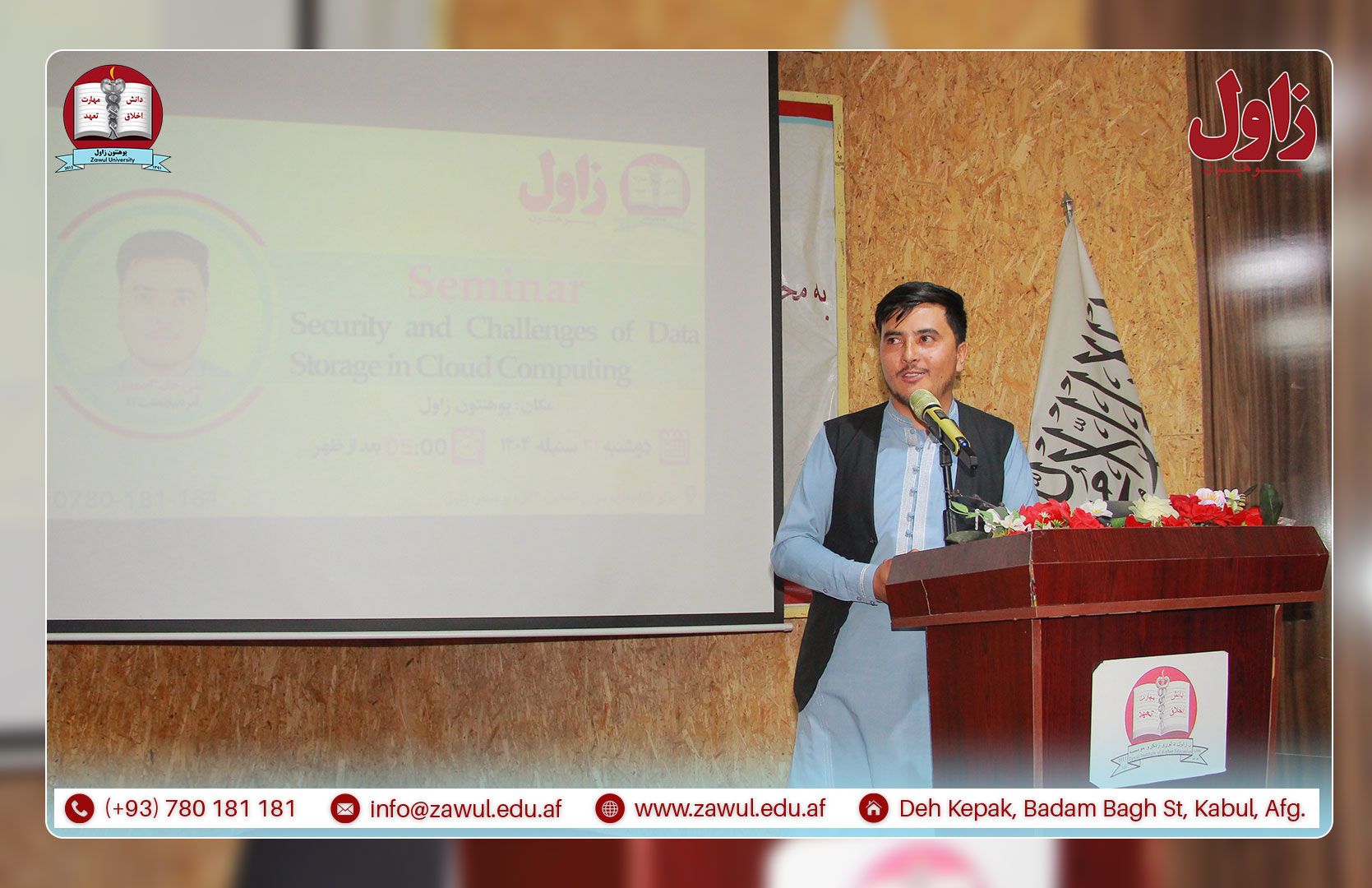 پوهنحی کمپیوترساینس پوهنتون زاول، به تاریخ ۳۱/۰۶/۱۴۰۴ هـ.ش، سمینار علمی ـ آموزشیای را تحت عنوان «امنیت و چالشهای ذخیرهسازی اطلاعات در Cloud Computing» در تالار کنفرانسهای پوهنتون برگزار نمود.