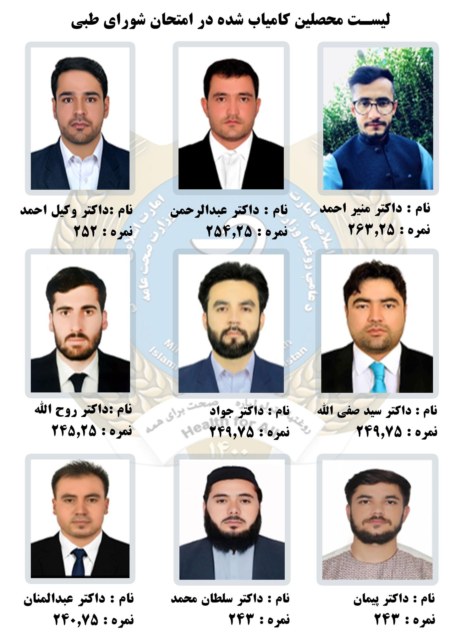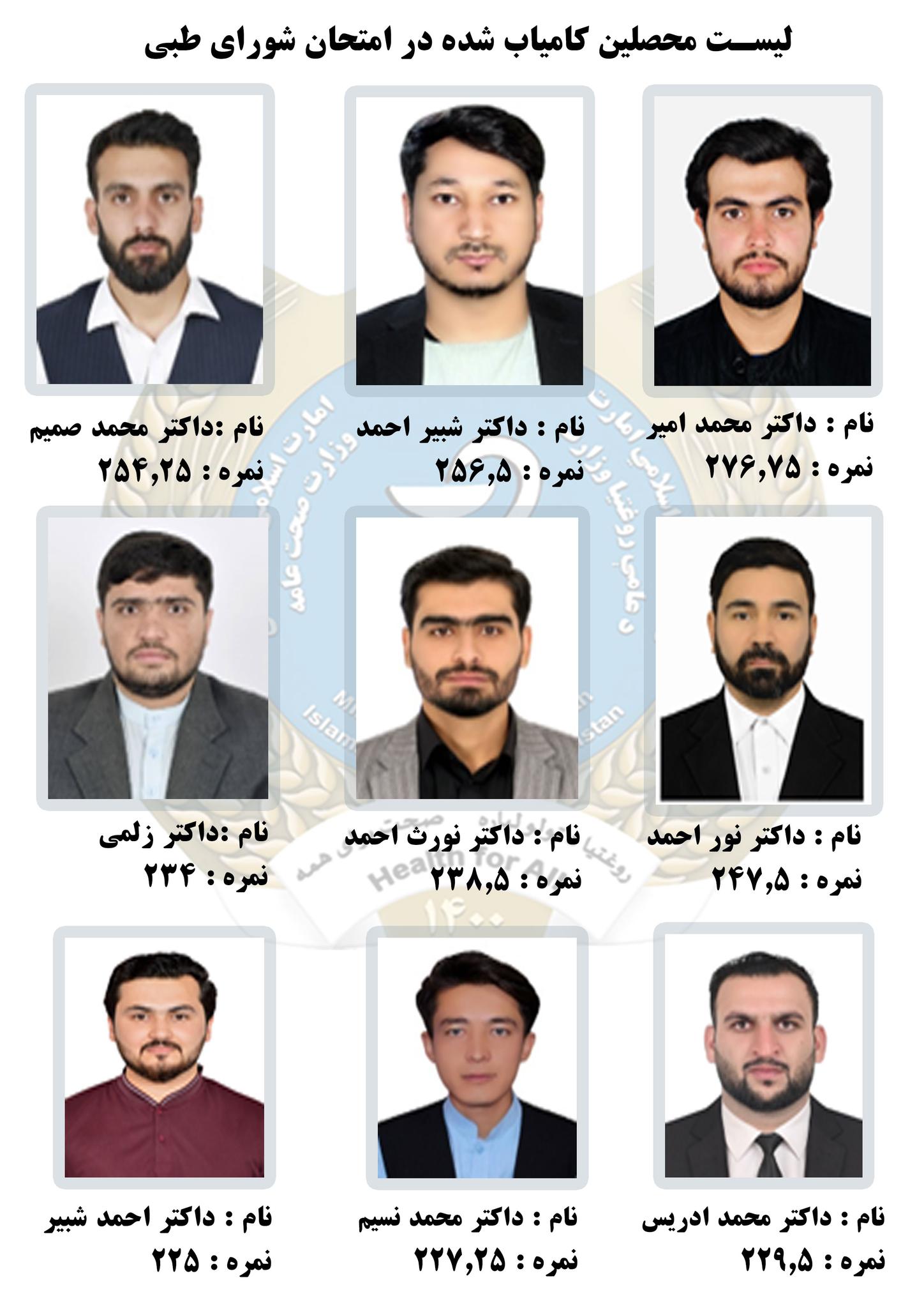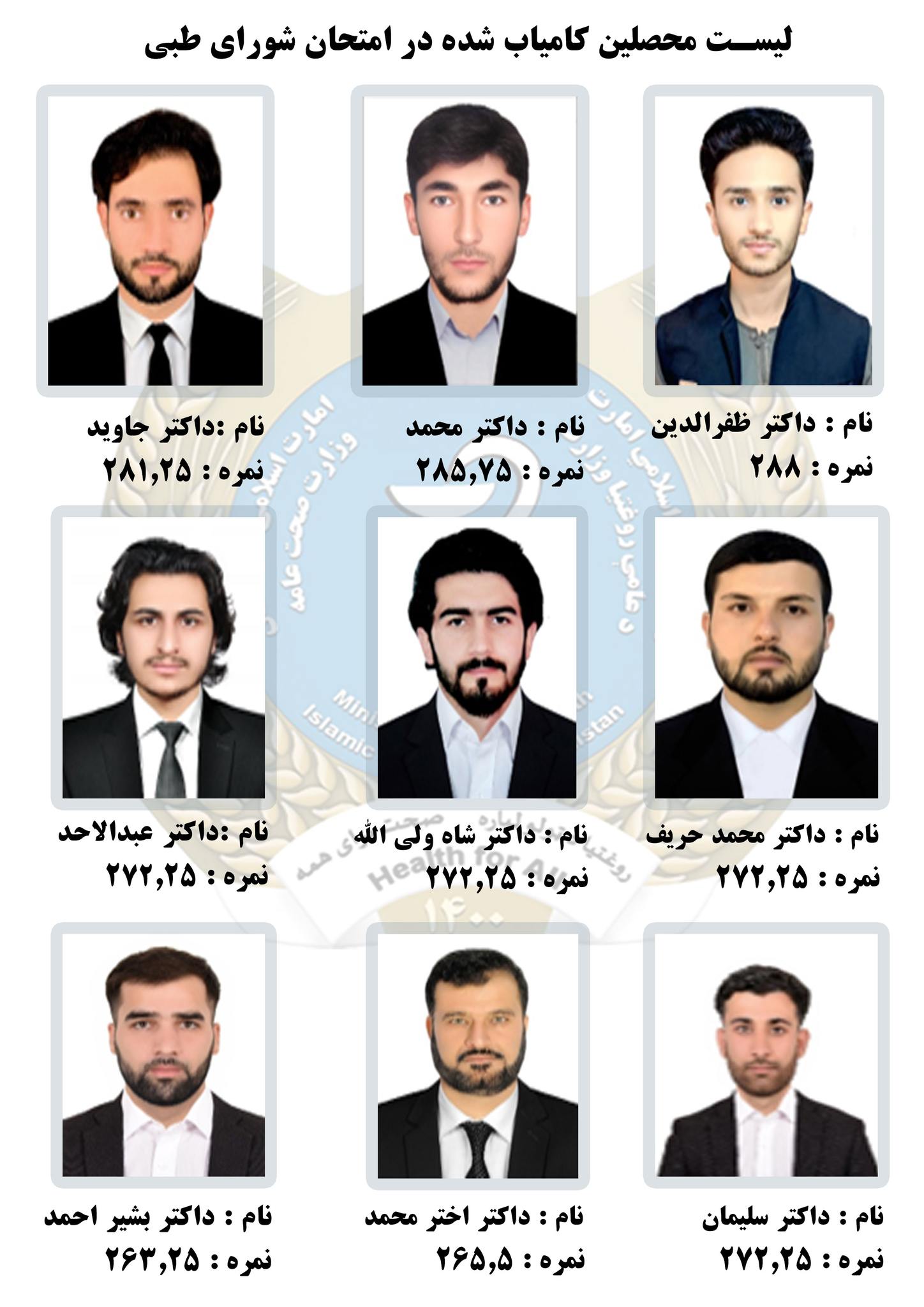 پوهنتون زاول با کمال مسرت، کامیابی فارغ‌التحصیلان پوهنحی‌های طب معالجوی و ستوماتولوژی را در امتحان «اگزیت» (Exit Exam)  به محصلان گرامی، خانواده‌های علم‌دوست ایشان و اساتید پرتلاش، تبریک و تهنیت عرض می‌دارد.