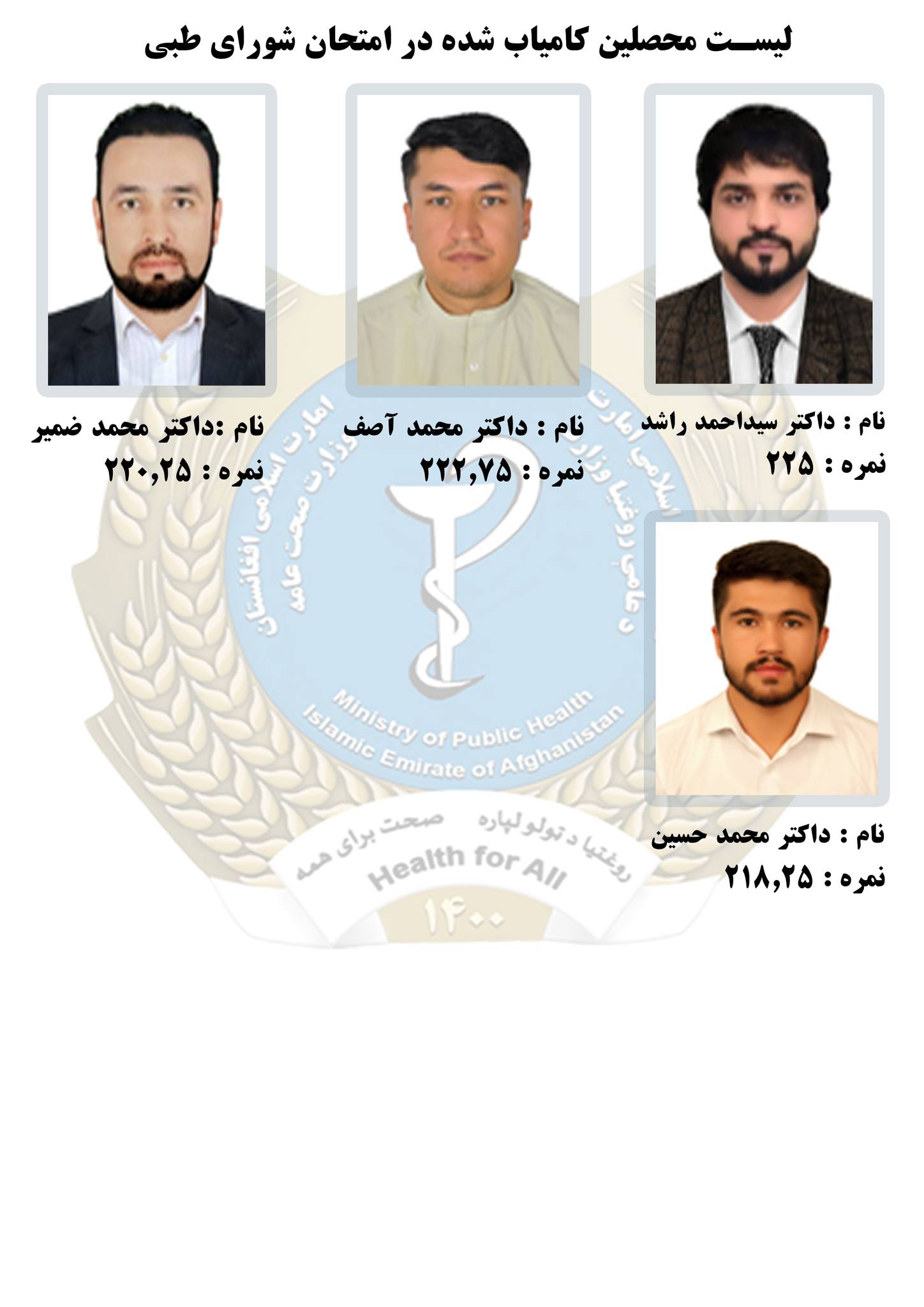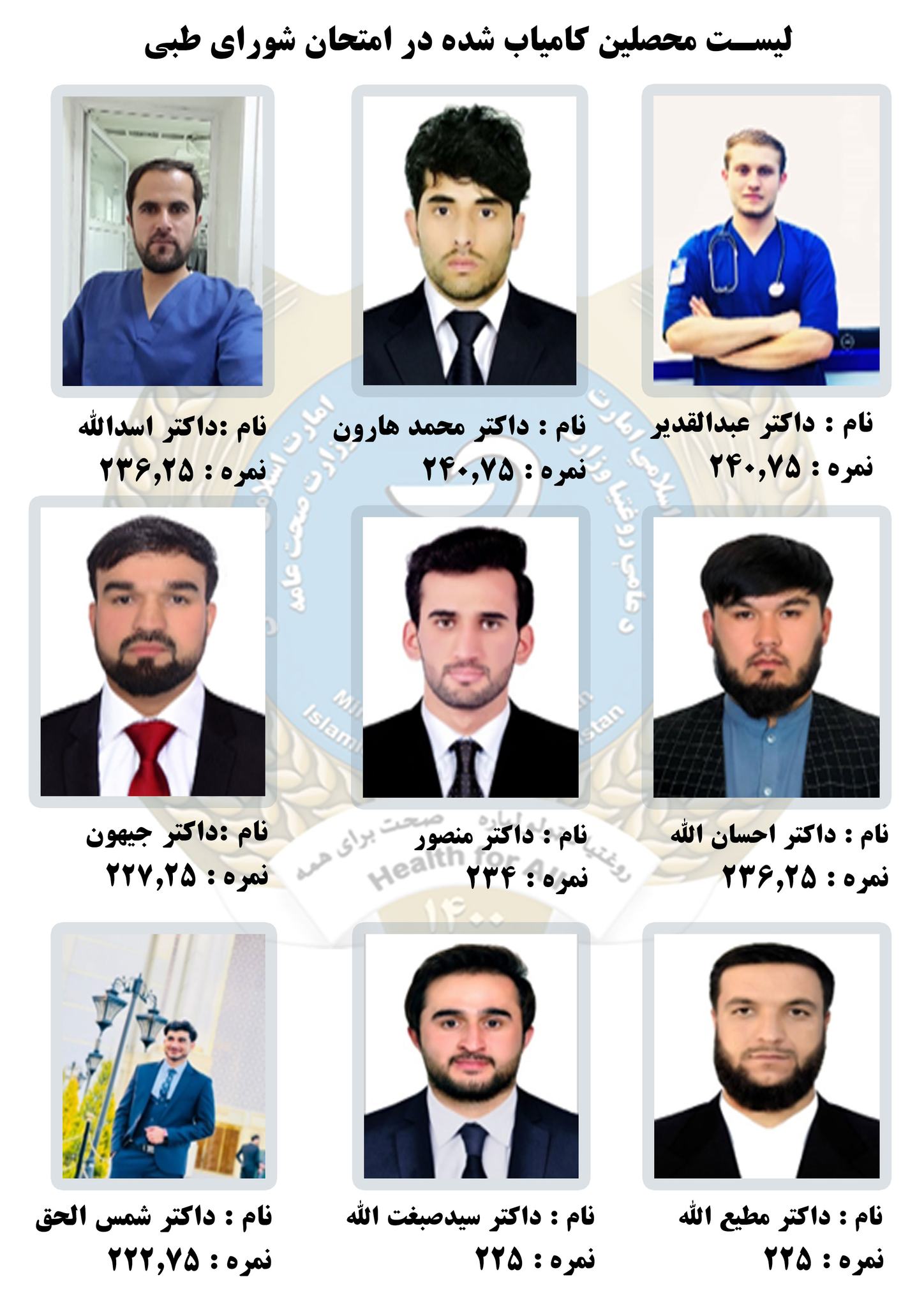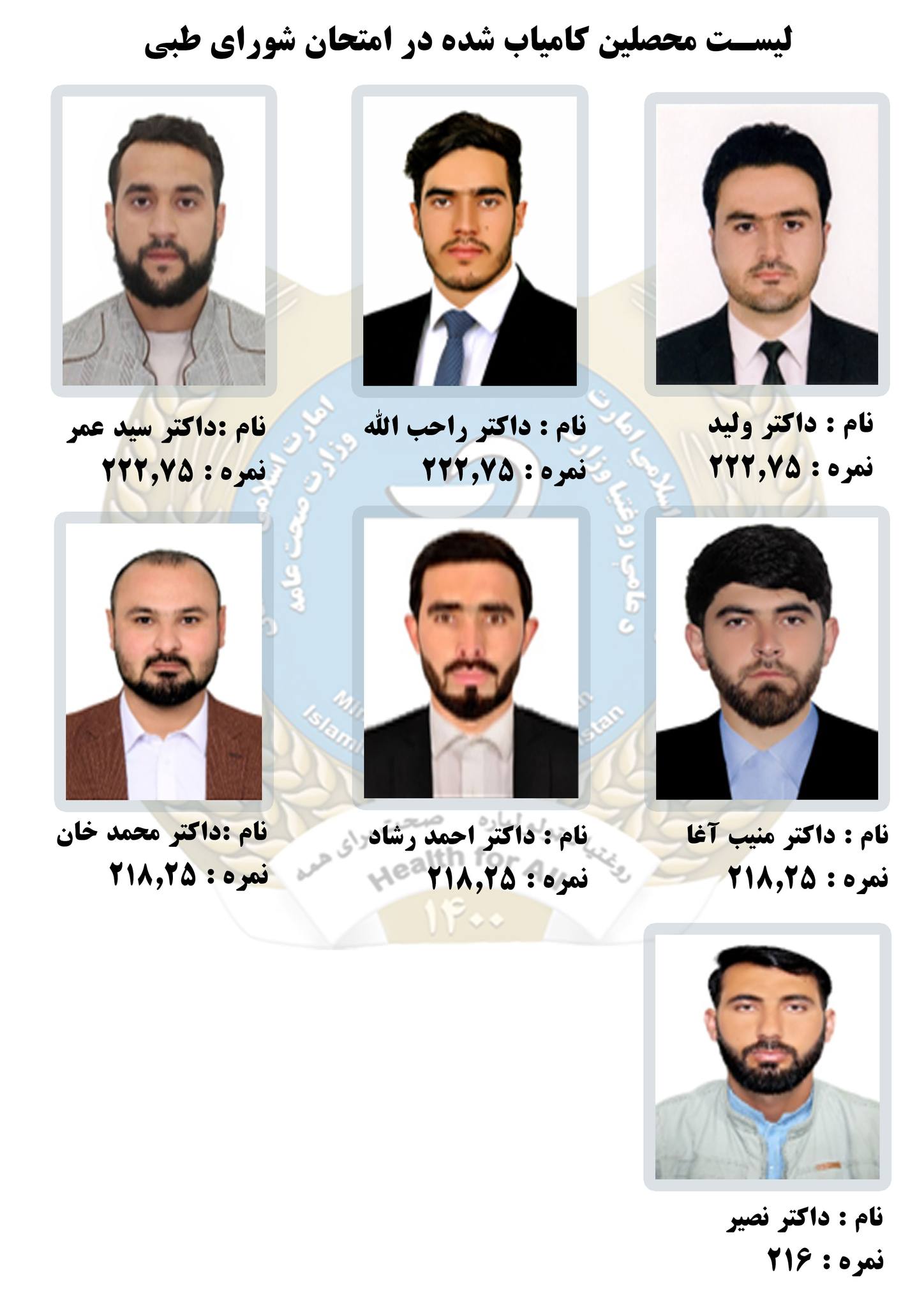 پوهنتون زاول با کمال مسرت، کامیابی فارغ‌التحصیلان پوهنحی‌های طب معالجوی و ستوماتولوژی را در امتحان «اگزیت» (Exit Exam)  به محصلان گرامی، خانواده‌های علم‌دوست ایشان و اساتید پرتلاش، تبریک و تهنیت عرض می‌دارد.