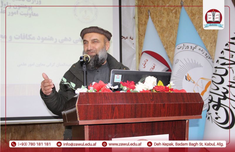 بهتاریخ ۱۰/۱/۱۴۰۵هـ.ش، سمینار آگاهیدهی از رهنمود مکافات و مجازات پوهنتونهای امارتی و خصوصی وزارت تحصیلات عالی، برای استادان و کارمندان با حضور هیئت رهبری، استادان و کارمندان اداری پوهنتون زاول برگزار گردید. این سمینار توسط پوهنیار داکتر عبدالمنان کرانی، معاون امور علمی-تدریسی پوهنتون، ارائه گردید. در جریان آن، پیرامون اهمیت رعایت قوانین و مقررات اداری، پالسیهای وزارت تحصیلات عالی، تنظیم امورانضباطی، تشویق و مکافات در پوهنتونها و همچنان جلوگیری از تخطیهای علمی و تخلفات اکادمیک، بحث و تأکید صورت گرفت. همچنان، چگونگی تطبیق مکافات و مجازات مطابق رهنمودهای وزارت تحصیلات عالی بهگونه مفصل تشریح گردید. در پایان، اشتراککنندگان پرسشها و نظریات خویش را مطرح نموده و پاسخهای لازم ارائه شد. این سمینار با هدف ارتقای سطح آگاهی و تقویت روحیه مسئولیتپذیری برگزار گردیده و با دعاییه خاتمه یافت.