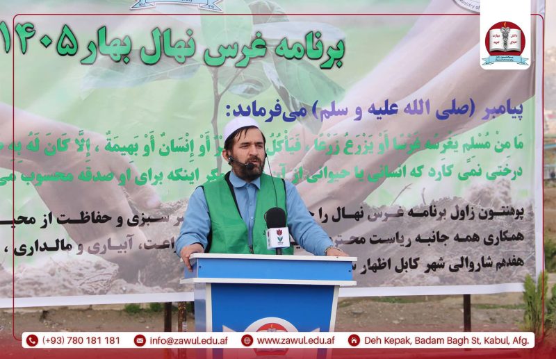 یکشنبه، مؤرخ ۱۶/۱/۱۴۰۵ هـ.ش، پوهنتون زاول در راستای سهمگیری در انکشاف جامعه، برنامهی غرس نهال را با همکاری وزارت زراعت، آبیاری و مالداری، ریاست سرسبزی شاروالی کابل و مسئولین مربوطه، با حضور جمعی از علما، محاسنسفیدان و وکلای گذرهای نواحی ۱۱ و ۱۷ شهر کابل، با شور و علاقهمندی ویژه برگزار کرد. این برنامه با تلاوت آیاتی چند از کلامالله مجید آغاز گردید. سپس، پوهنیار دکتر نقیبالله الفت، رئیس پوهنتون زاول، پیرامون اهمیت غرس نهال و نقش آن در سرسبزسازی، توسعه و آبادانی کشور، بهگونهی مفصل سخنرانی نمود. در ادامه، محترم مولوی محمد شاه همت، معاون فنی و تخنیکی شاروالی کابل، ضمن قدردانی از ابتکار پوهنتون زاول در برگزاری این برنامه، تأکید کرد که شاروالی کابل متعهد به سرسبزسازی شهر و رفع موانع موجود در این راستا میباشد. همچنان، پوهنیار دکتر عبدالمنان کرانی، معاون امور علمی-تدریسی پوهنتون زاول، در سخنرانی خود به نقش و تلاش پوهنتون زاول در سبزسازی محیط زیست و توسعه پایدار کشور تأکید کرد. وی بیان داشت که دانشگاهها نه تنها مراکز آموزش و تولید علم هستند، بلکه میتوانند با ترویج فرهنگ حفاظت از محیط زیست، انجام تحقیقات علمی و اجرای برنامههای عملی مانند غرس نهال، سهم مهمی در سرسبزی و بهبود وضعیت محیطی کشور داشته باشند.