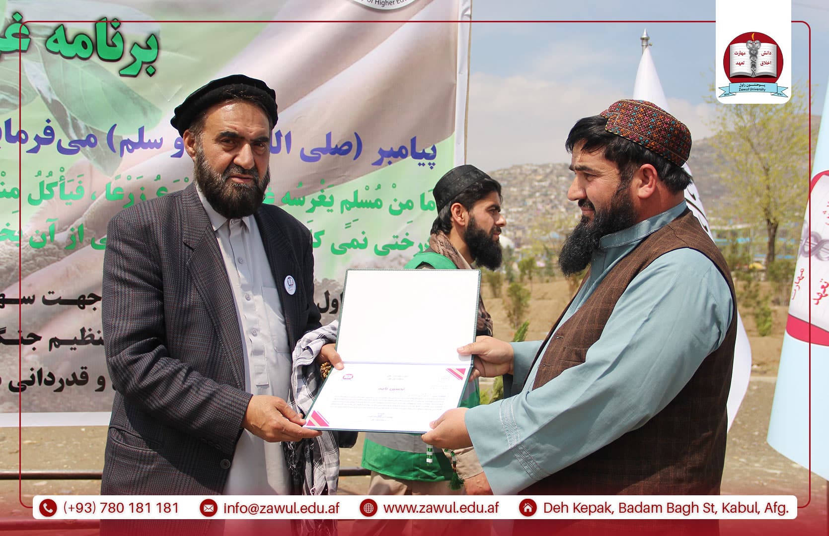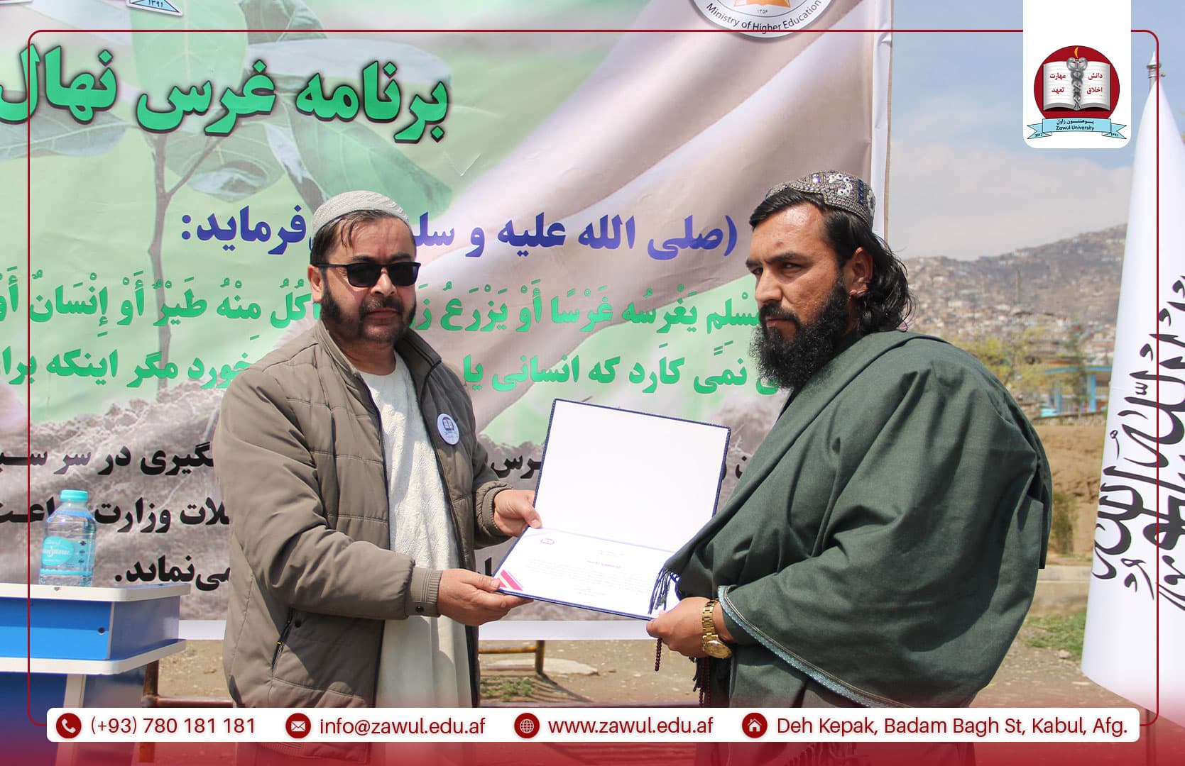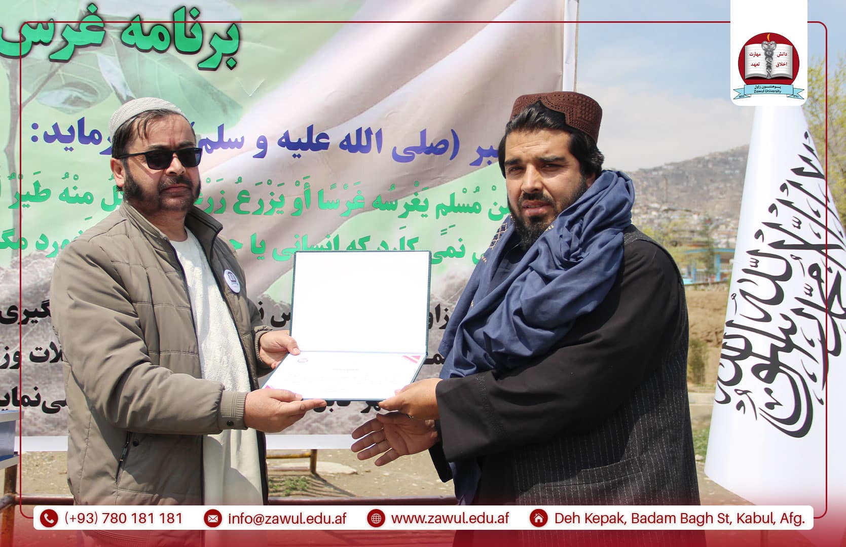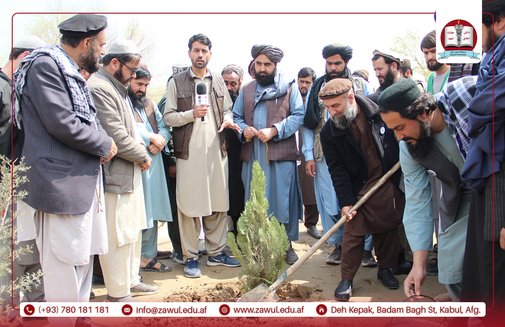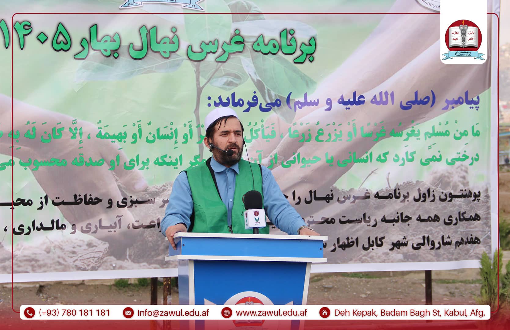 یکشنبه، مؤرخ ۱۶/۱/۱۴۰۵ هـ.ش، پوهنتون زاول در راستای سهمگیری در انکشاف جامعه، برنامهی غرس نهال را با همکاری وزارت زراعت، آبیاری و مالداری، ریاست سرسبزی شاروالی کابل و مسئولین مربوطه، با حضور جمعی از علما، محاسنسفیدان و وکلای گذرهای نواحی ۱۱ و ۱۷ شهر کابل، با شور و علاقهمندی ویژه برگزار کرد. این برنامه با تلاوت آیاتی چند از کلامالله مجید آغاز گردید. سپس، پوهنیار دکتر نقیبالله الفت، رئیس پوهنتون زاول، پیرامون اهمیت غرس نهال و نقش آن در سرسبزسازی، توسعه و آبادانی کشور، بهگونهی مفصل سخنرانی نمود. در ادامه، محترم مولوی محمد شاه همت، معاون فنی و تخنیکی شاروالی کابل، ضمن قدردانی از ابتکار پوهنتون زاول در برگزاری این برنامه، تأکید کرد که شاروالی کابل متعهد به سرسبزسازی شهر و رفع موانع موجود در این راستا میباشد. همچنان، پوهنیار دکتر عبدالمنان کرانی، معاون امور علمی-تدریسی پوهنتون زاول، در سخنرانی خود به نقش و تلاش پوهنتون زاول در سبزسازی محیط زیست و توسعه پایدار کشور تأکید کرد. وی بیان داشت که دانشگاهها نه تنها مراکز آموزش و تولید علم هستند، بلکه میتوانند با ترویج فرهنگ حفاظت از محیط زیست، انجام تحقیقات علمی و اجرای برنامههای عملی مانند غرس نهال، سهم مهمی در سرسبزی و بهبود وضعیت محیطی کشور داشته باشند.